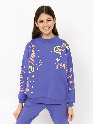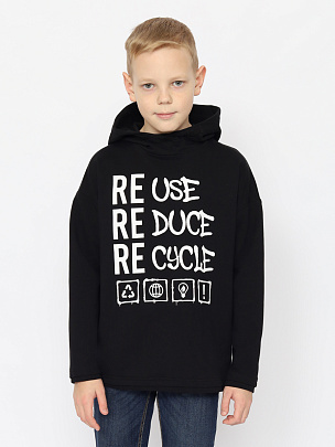 Толстовка с длинными рукавами, притачным поясом и манжетами. Манжеты выполнены из полотна с добавлением лайкры, пояс выполнен из основного полотна. Капюшон со шнурком и подкладкой, верхняя часть декорирована вязаной нашивкой. Перед декорирован принтом "Катайся каждый день".