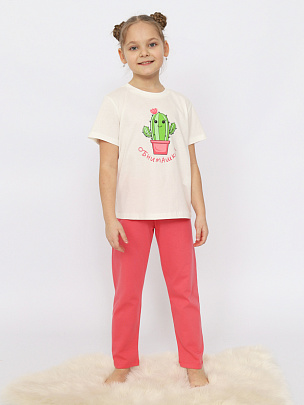 Футболка для девочки с трендовым колледж-принтом, с блестящим эффектом и контрастными бейками по горловине и рукавам. Модель сделана из 100%-хлопкового трикотажа. Материал приятно прилегает к телу, не сковывает движения и позволяет коже дышать.