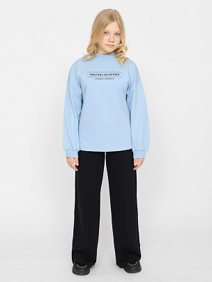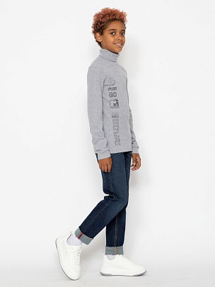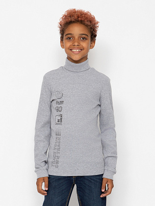 Водолазка для мальчика с воротником-стойкой, с отворотом. Рукава длинные с манжетами из основного полотна по низу. Перед водолазки декорирован принтом "Проследи свой путь".