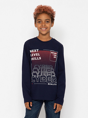 Джемпер с длинными рукавами, притачным поясом и манжетами. Рукав-реглан, отрезной, нижняя часть рукава декорирована принтом "Киберпространство".