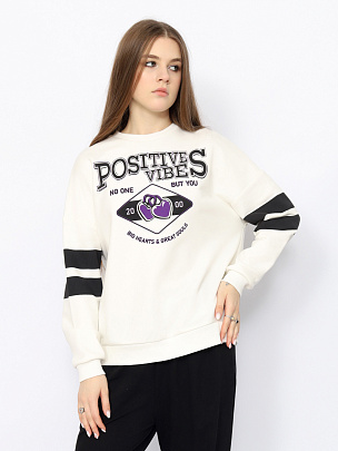 Джемпер с длинными втачными рукавами и притачными манжетами. Воротник, манжеты и пояс выполнены из полотна с эластаном. Перед декорирован принтом "Виртуальный мир без границ".