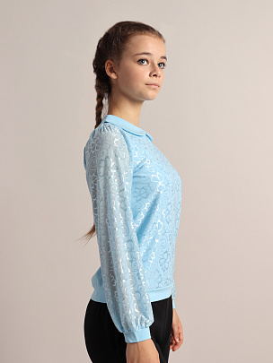 Классическая блузка из хлопка, свободного силуэта с отложным воротником и длинными рукавами с манжетами. Застёжка центральная на планку с пуговицами, декорирована принтом ввиде надписей на полочках.