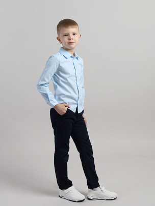 Рубашка классическая, полуприталенного силуэта, с длинным рукавом рубашечного покроя, с притачными манжетами, с застегивающейся шлицей рукава. Воротник обтачной с притачной стойкой.