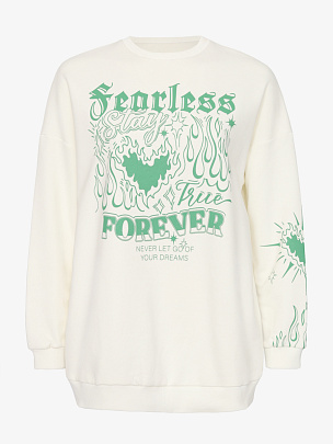 Молодежная толстовка oversize c длинными рукавами и креативным принтом спереди и на рукаве (всегда оставайся верной и бесстрашной).