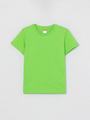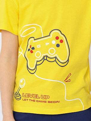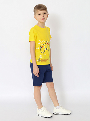 Футболка с коротким рукавом. Горловина круглая, обработана узким воротником из полотна с эластаном. Перед оформлен принтом.